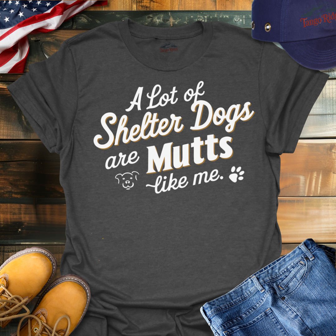 Wear Your Mutt Pride: The phrase "A Lot of Shelter Dogs are Mutts Like Me" embraces the beauty and uniqueness of mixed-breed dogs. This tee is a tribute to the wonderful diversity found in shelters and the special bond we share with our beloved mutts.