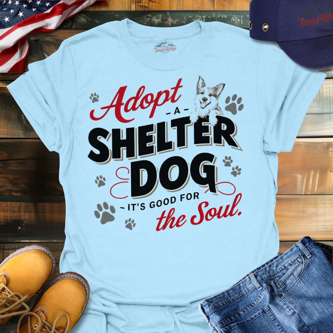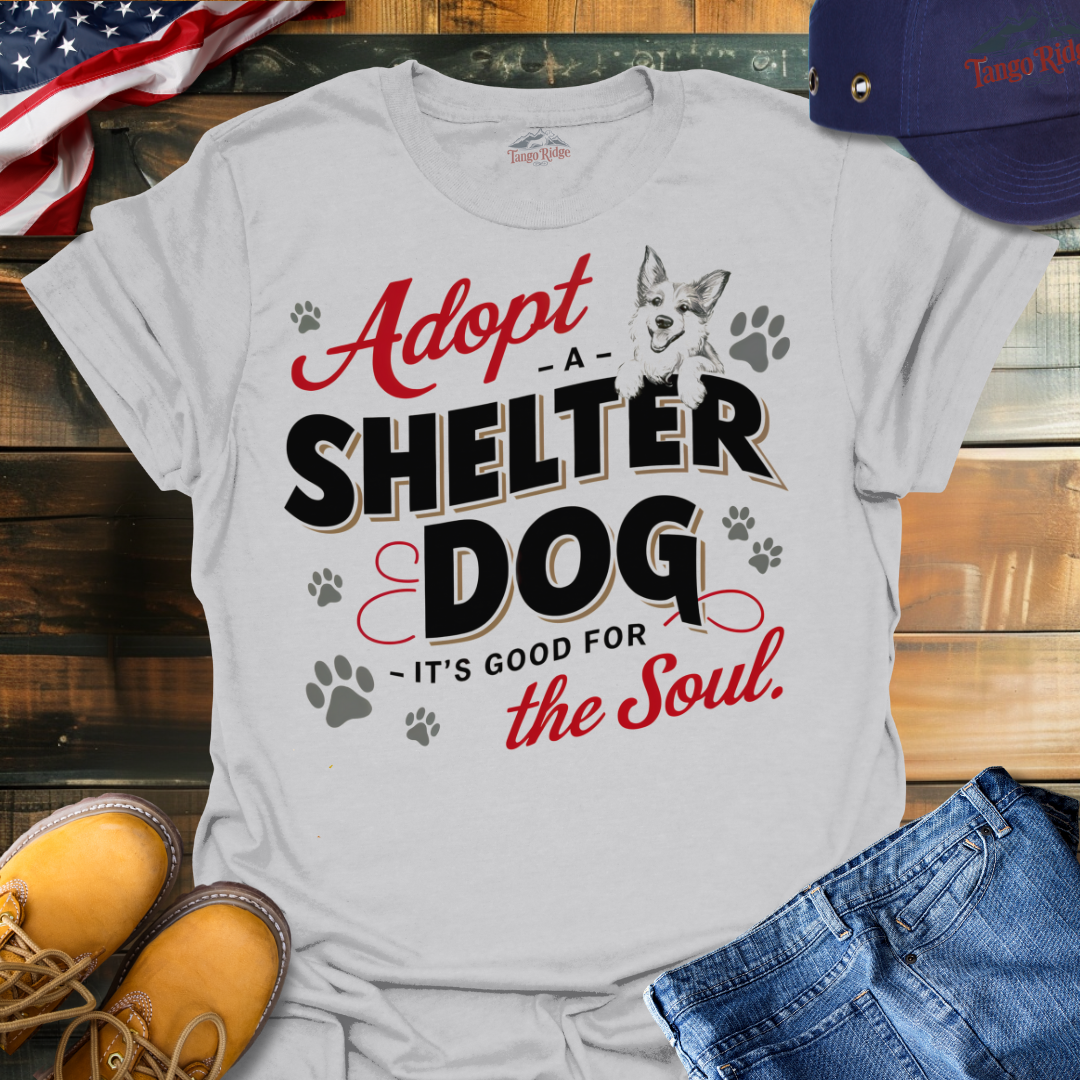 Embrace the joy and fulfillment of adopting a shelter dog. Wear this tee proudly and let everyone know "Adopt a Shelter Dog, It's Good for the Soul."