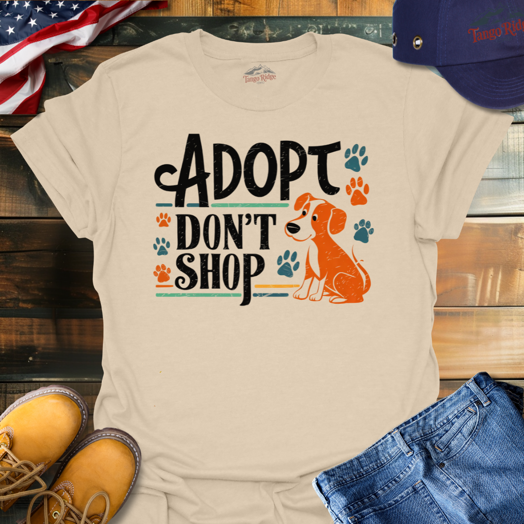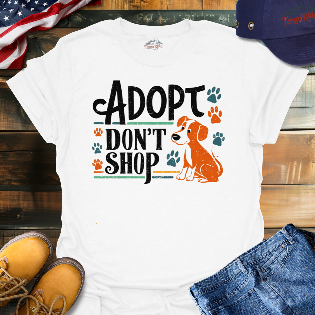 Spread the vital message of pet adoption and wear this tee proudly to show your support for "Adopt Don't Shop."