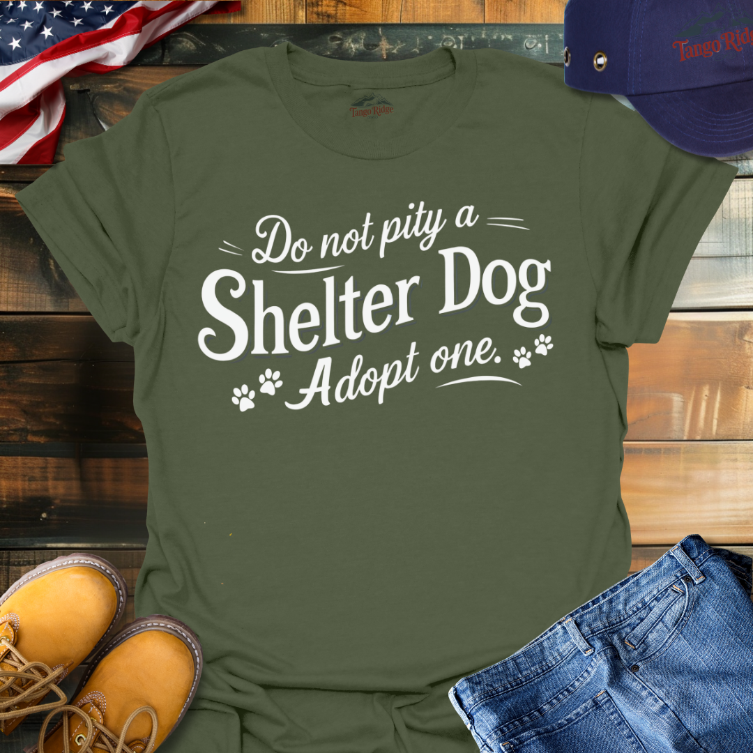 Take Action: The phrase "Do Not Pity a Shelter Dog, Adopt One" encourages positive action over sympathy, advocating for the adoption of shelter dogs. This tee is perfect for spreading awareness and inspiring others to make a difference.
