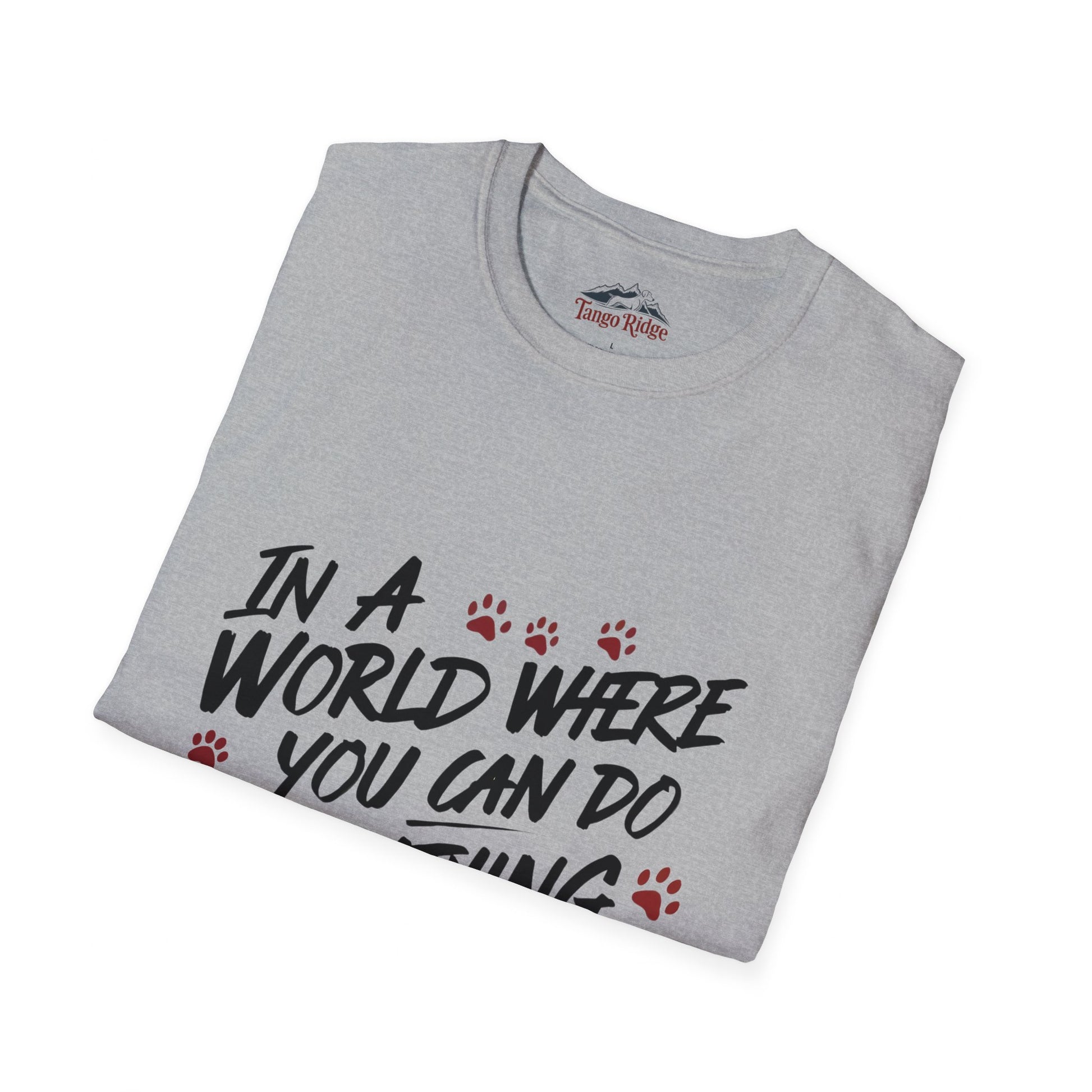 Inspire Action: The phrase "In a World Where You Can Do Anything, Rescue" encourages everyone to choose compassion and take action to rescue animals. This tee is perfect for spreading a powerful message of love and rescue.