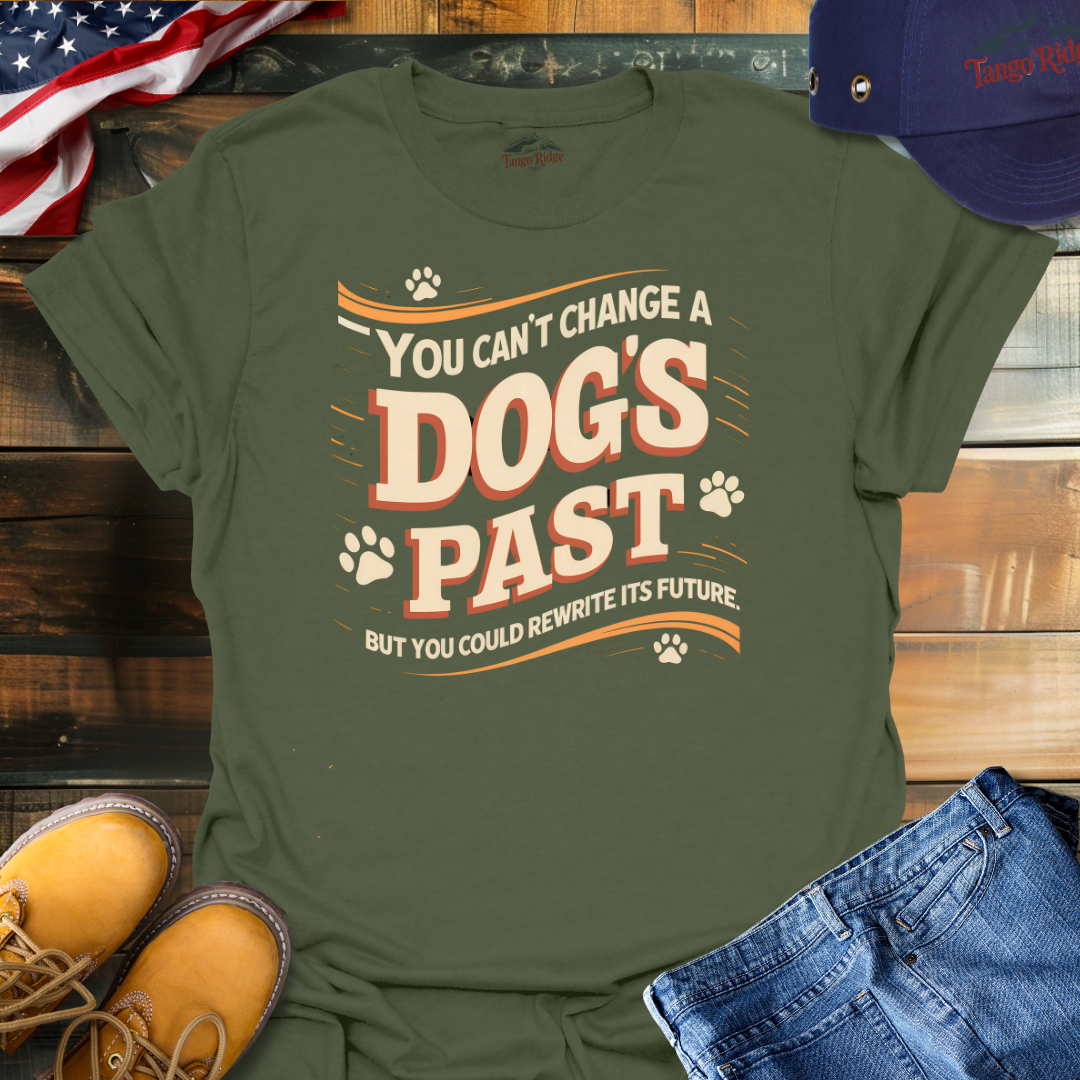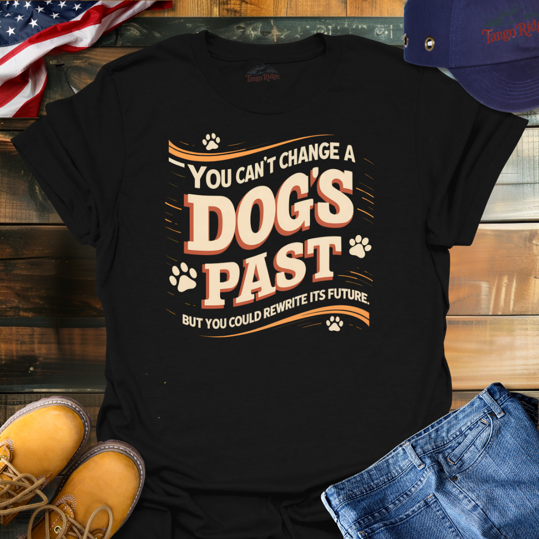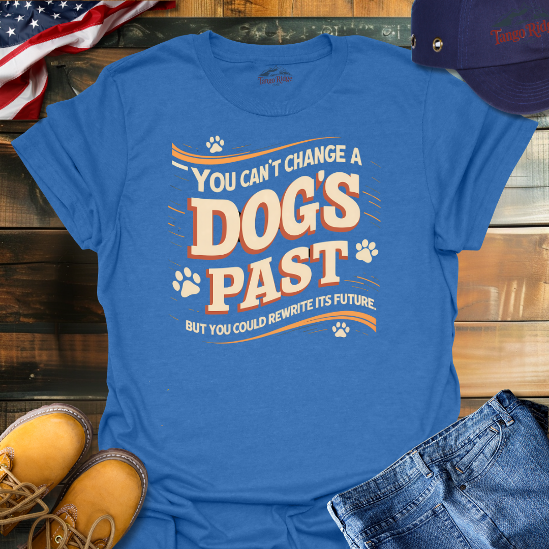 Rewrite the Future: The phrase "You Can't Change a Dog's Past, But You Can Rewrite its Future" highlights the transformative power of rescuing a dog. This tee is perfect for those committed to giving dogs a new beginning.